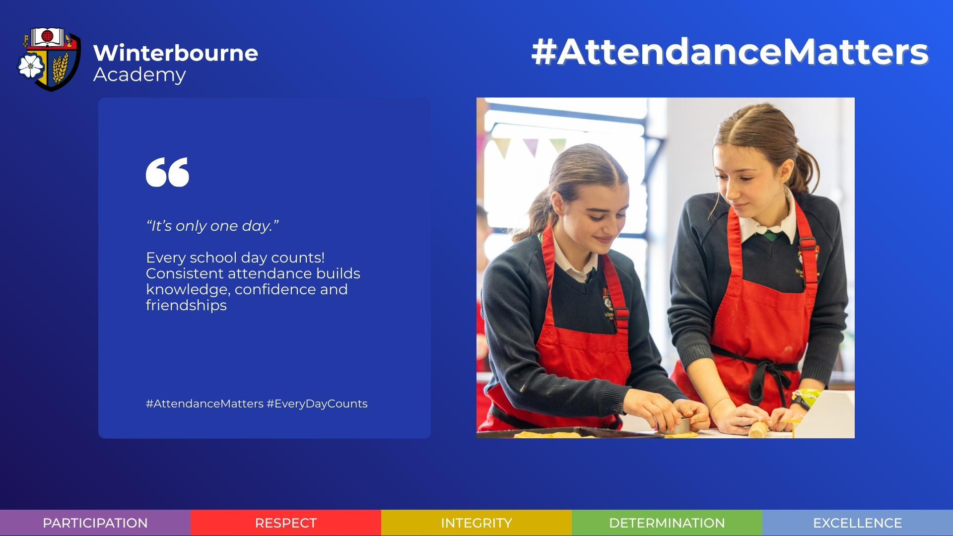 - Attending school every day means students don’t fall behind and can stay on track.