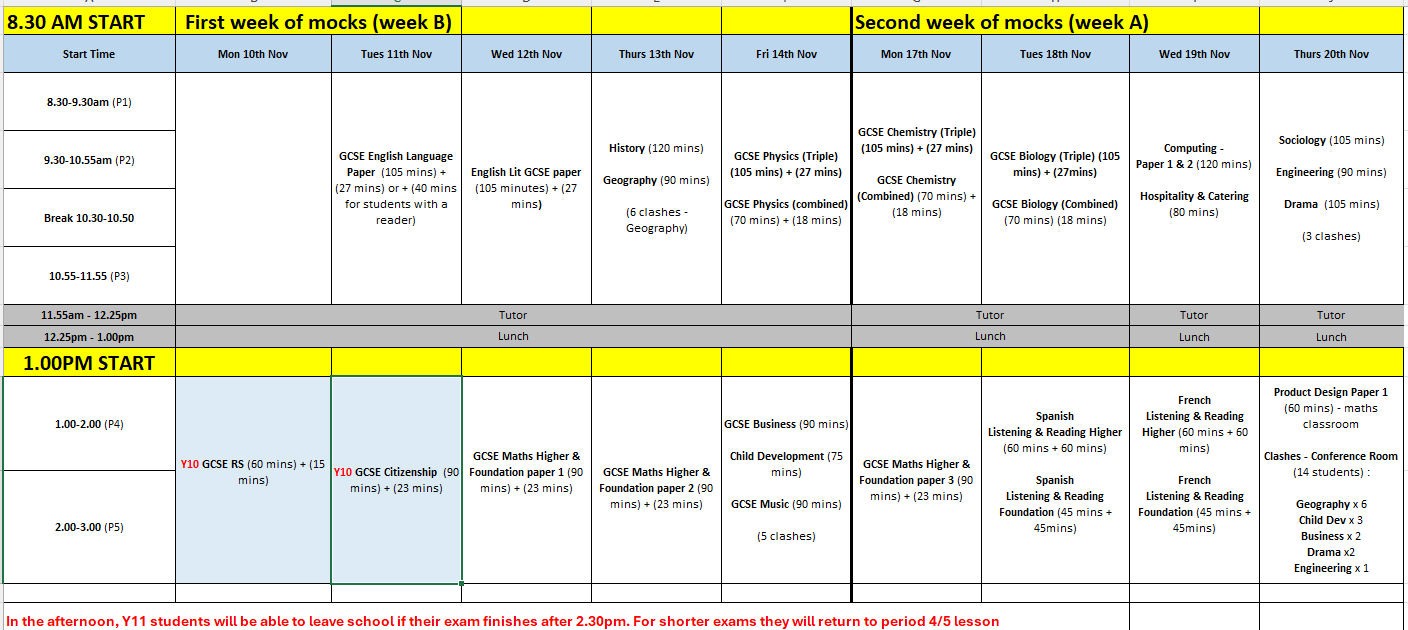 The Y10 & Y11 November mock schedule can be found here: